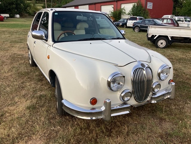 Based on Nissan March chassis (and titled as such). 1300cc 4 cyl. resembles Jaguar MKII, Fun to drive and rare 5 speed. Cold AC, Leather, good paint, fun car. Priced to sell to someone who likes it more than I do!