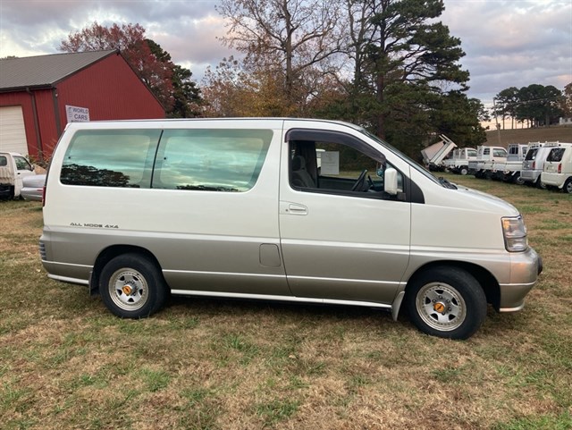 The Nissan Elgrand is a larger 8 passenger ''Minivan'' sold in Japan with Right Hand Drive. This one has ''All Mode'' 4wd which can be used as a 2wd, 4wd, or All wheel drive. Powered by the Nissan VG3300 v6 engine, it is easier to service in the US than many JDM imports. This example is in nice condition with less than 60,000 miles on it. Sold with Arkansas Title
